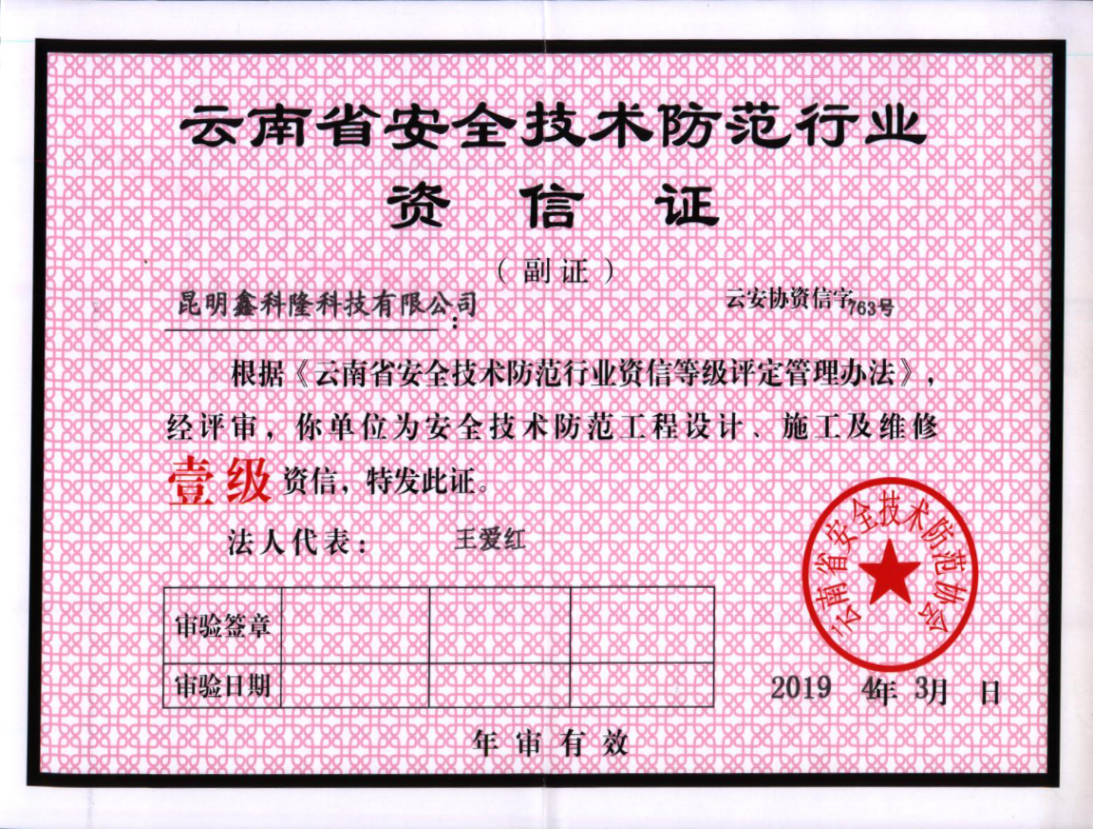 云南省安全技术防范行业壹级资信